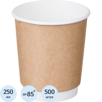 Стакан одноразовый бум двухслойный d-80мм 250мл коричневый (500шт/кор)