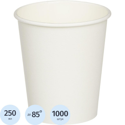 Стакан одноразовый бум 1-сл. d-80мм 250мл белый 1000шт/кор