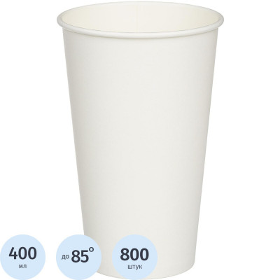 Стакан одноразовый бум однослойный d-90мм 400мл белый 800шт/кор