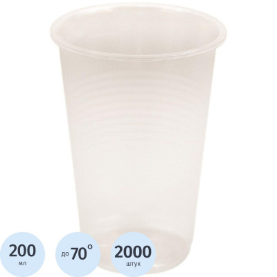 Стакан одноразовый 200мл прозрачный, ПП, А25, 2000шт/кор