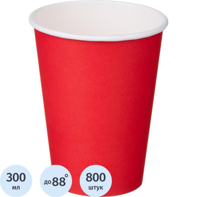 Стакан одноразовый бум 1-сл. d-90мм 300мл красный КОМУС 800шт/кор