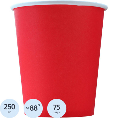 Стакан одноразовый бум 1-сл. d-80мм 250мл красный КОМУС 75шт/уп