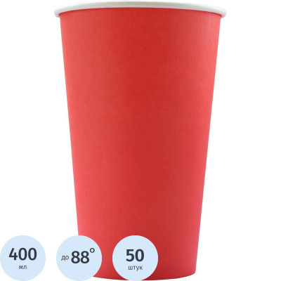 Стакан одноразовый бум 1-сл. d-90мм 400мл красный КОМУС 50шт/уп