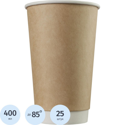 Стакан одноразовый бум двухслойный d-90мм 400мл коричневый (25шт/уп)