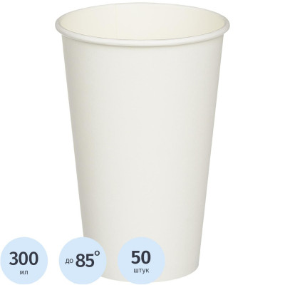 Стакан одноразовый бум 1-сл. d-80мм 250мл белый КОМУС 50шт/уп