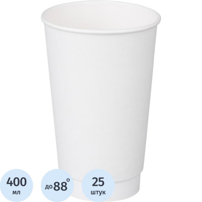 Стакан одноразовый бум. 2-сл 400мл d-90мм белый, Комус, 25шт/уп