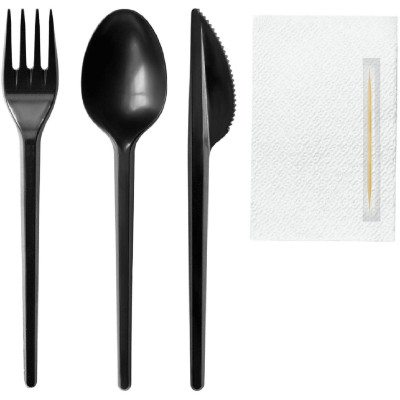 Набор столовых приборов №5 черный 18см., (в,л. ст., н.,салф,зуб) 200 шт/уп