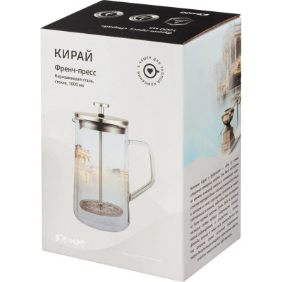 Френч-пресс 1000мл Кирай боросил.стекло, пластик ручка (BX608)