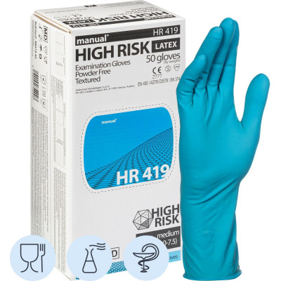 Перчатки мед.смотров. латекс,н/с,н/о, MANUAL HR419 High Risk M 25пар,ПС