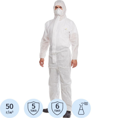 Комбинезон одноразовый Каспер, белый, 30 г/м2, р-р.ХХL 1 шт/уп
