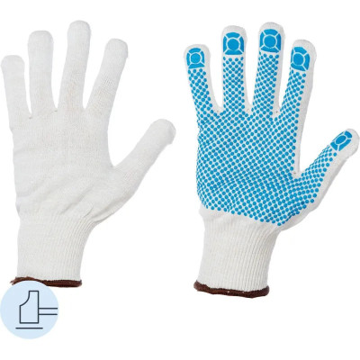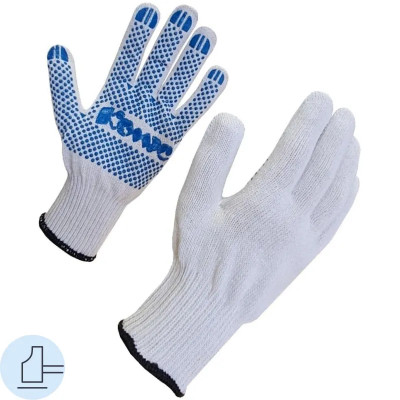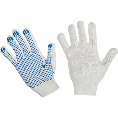 Перчатки защитные трикотажные с ПВХ Точка 5 нитей 10 класс белые 10пар/уп