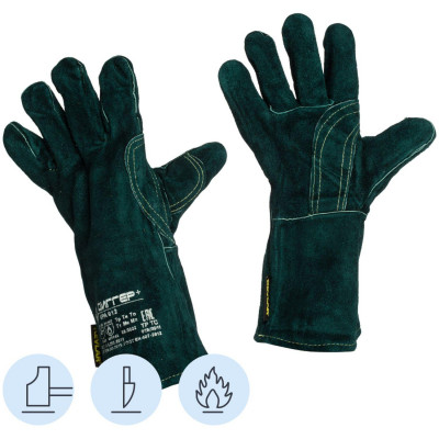 Краги сварщика ДИГГЕР+ спилковые зеленые с кевларовой нитью (Размер 10,5)