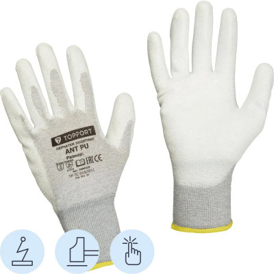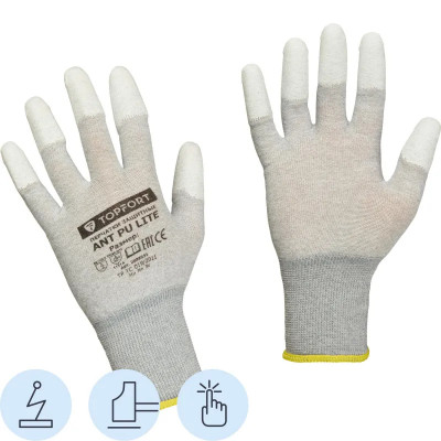 Перчатки защитные TOPFORT Ant PU Lite антистат.нейлон/карбон.нить с ПУ р8