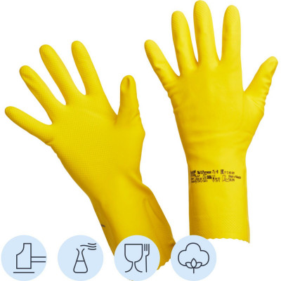Перчатки резиновые ViledaProfesКонтракт латекс хлоп.напыл желт рS 101016,ПС