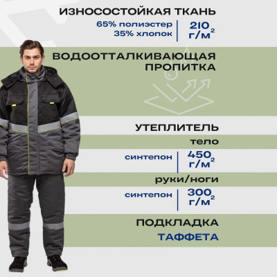 Костюм рабочий зимний муж з43-КПК сер/чер р.56-58/182-188 (серия З)