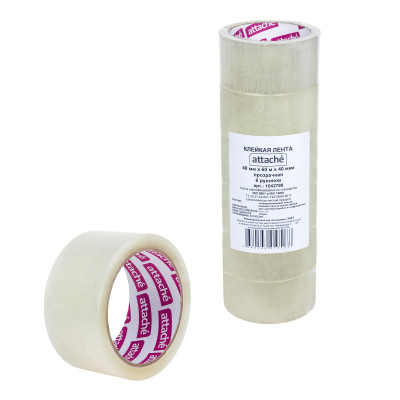 Клейкая лента упаковочная ATTACHE 48мм х 60м 40мкм прозрачная 6 шт/уп