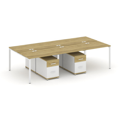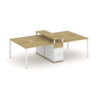 Concept Рабочая станция 4 места с 1 опорной тумбой CN.DRS-438 W Дуб Винченцо/...