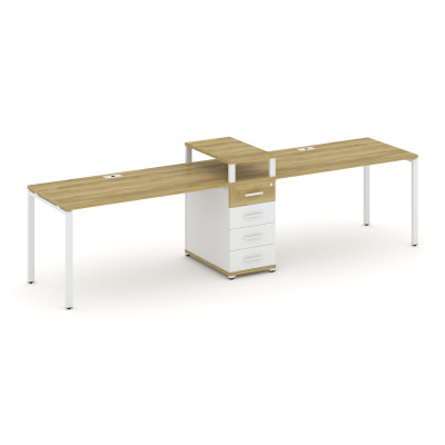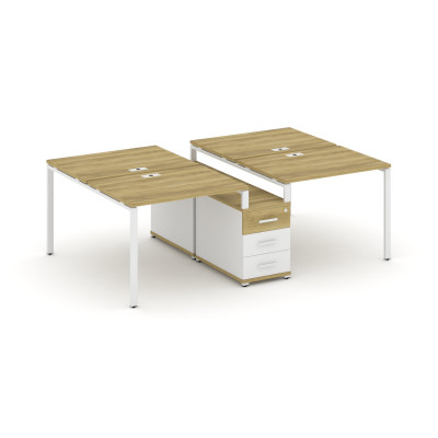 Concept Рабочая станция 2 места с 1 опорной тумбой CN.ORS-404 W Дуб Мали/Белы...