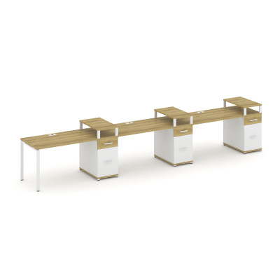 Concept Рабочая станция 3 места с 3 опорными тумбами CN.ORS-462 W Дуб Винченц...
