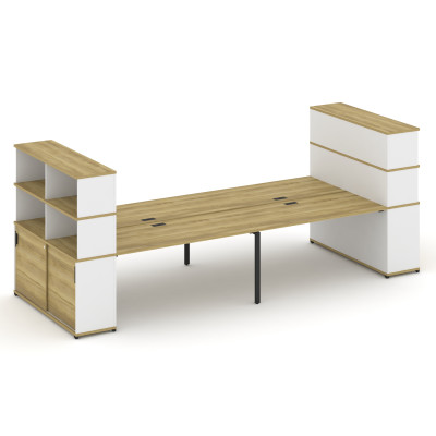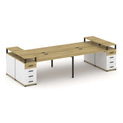 Concept Рабочая станция 4 места с 2 опорными тумбами CN.DRS-443 B Дуб Винченц...