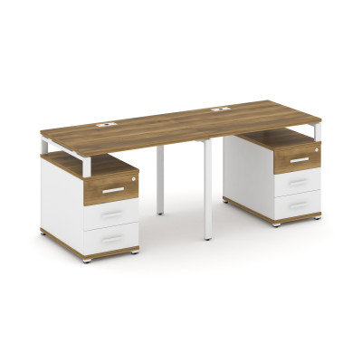 Concept Рабочая станция 2 места с 2 опорными тумбами CN.ORS-317 B Дуб Мали/Бе...