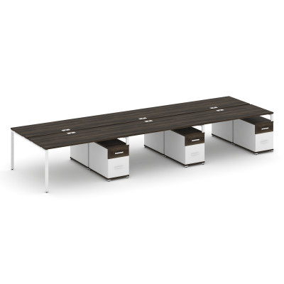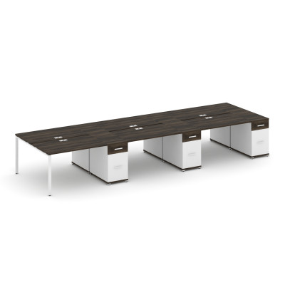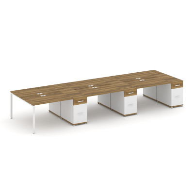 Concept Рабочая станция 6 мест 3 опорными тумбами CN.DRS-477 W Дуб Винченцо/Б...