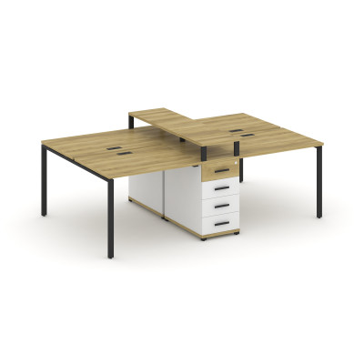Concept Рабочая станция 4 места с 1 опорной тумбой CN.DRS-435 B Дуб Винченцо/...