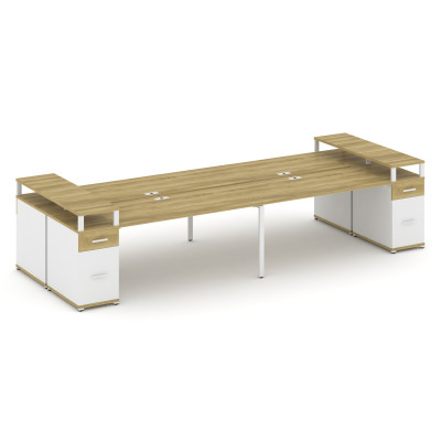 Concept Рабочая станция 4 места с 2 опорными тумбами CN.DRS-448 W Дуб Мали/Бе...
