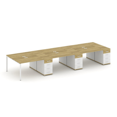 Concept Рабочая станция 6 мест с 3 опорными тумбами CN.DRS-474 W Дуб Мали/Бел...