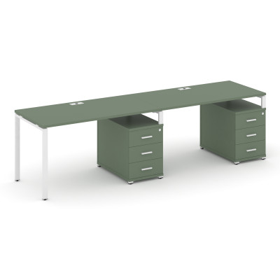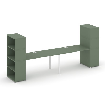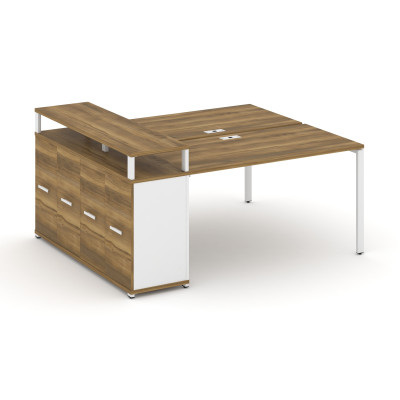 Concept Рабочая станция 2 места с 2 опорными тумбами CN.ORS-312 W Кобо/Металл...