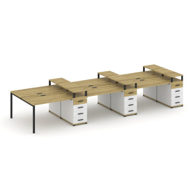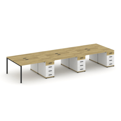 Concept Рабочая станция 6 мест с 3 опорными тумбами CN.DRS-458 B Дуб Винченцо...