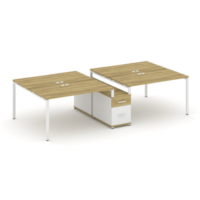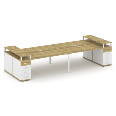 Concept Рабочая станция 4 места с 2 опорными тумбами CN.DRS-444 W Дуб Мали/Бе...