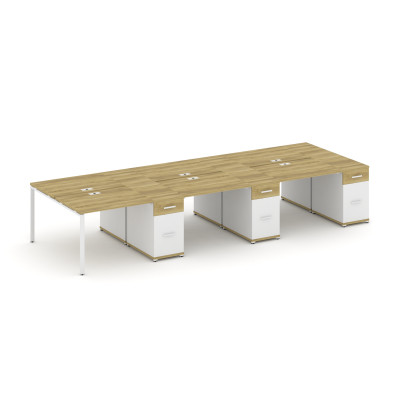 Concept Рабочая станция 6 мест с 2 опорными тумбами CN.DRS-469 W Дуб Мали/Бел...