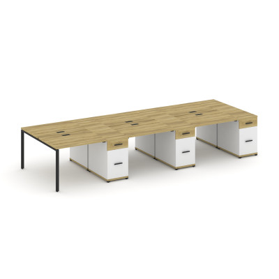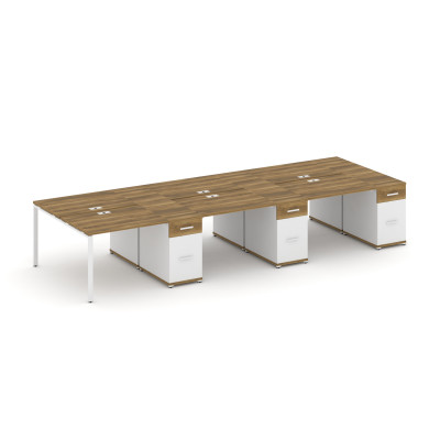 Concept Рабочая станция 6 мест 3 опорными тумбами CN.DRS-473 B Дуб Винченцо/Б...