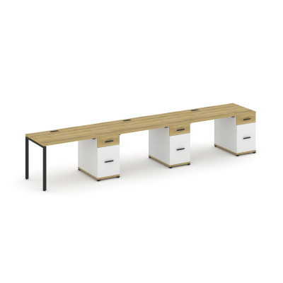 Concept Рабочая станция 3 места с 3 опорными тумбами CN.ORS-445 B Дуб Винченц...