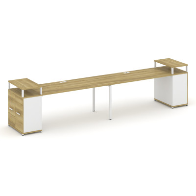 Concept Рабочая станция 2 места с 1 опорной тумбой CN.ORS-403 B Дуб Мали/Белы...