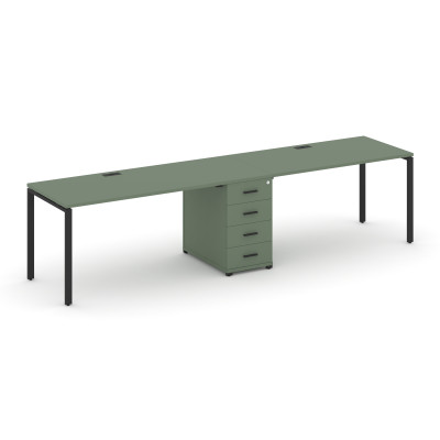 Линейные рабочие станции с опорными тумбами/шкафами