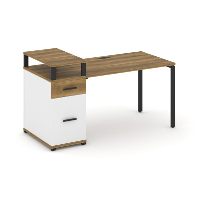 Concept Стол рабочий с 1 опорной тумбой CN.SP-414 W Кобо/Белый Бриллиант/Мета...