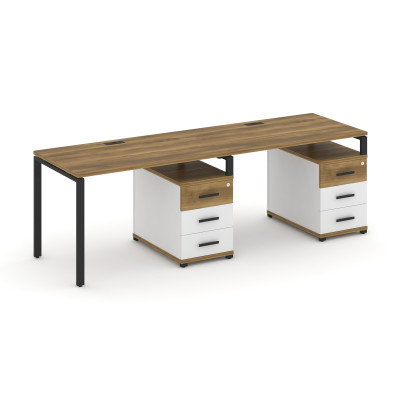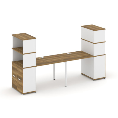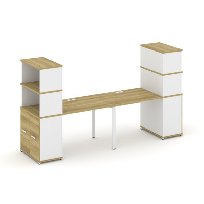 Concept Рабочая станция 2 места с 2 опорными тумбами CN.ORS-415 B Дуб Мали/Бе...