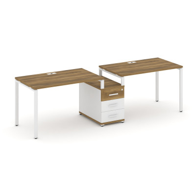 Concept Рабочая станция 2 места с 1 опорной тумбой CN.ORS-302 B Дуб Мали/Белы...