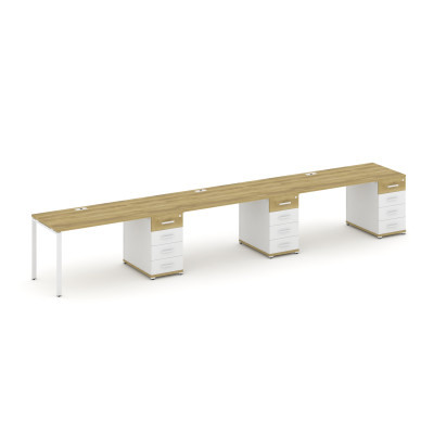 Concept Рабочая станция 3 места с 2 опорными тумбами CN.ORS-334 B Дуб Мали/Бе...
