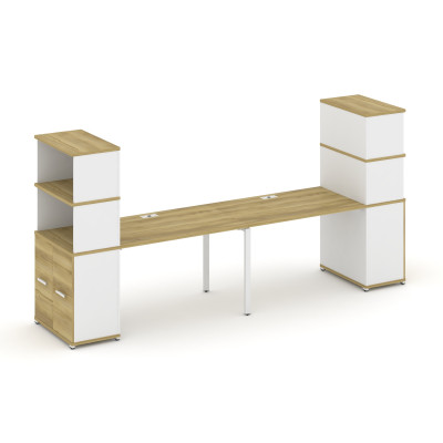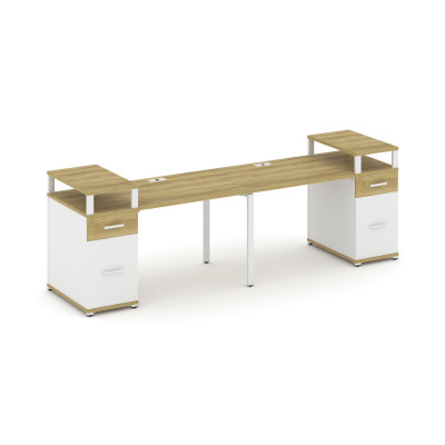 Concept Рабочая станция 2 места с 2 опорными тумбами CN.ORS-429 B Дуб Мали/Бе...