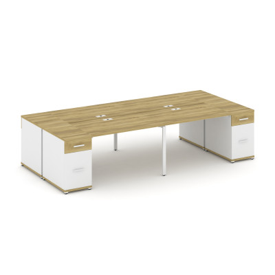 Concept Рабочая станция 4 места с 2 опорными тумбами CN.DRS-430 W Дуб Мали/Бе...