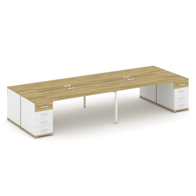 Concept Рабочая станция 4 места с 2 опорными тумбами CN.DRS-428 W Дуб Винченц...