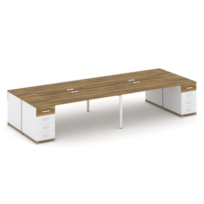 Concept Рабочая станция 4 места с 2 опорными тумбами CN.DRS-428 B Дуб Мали/Бе...