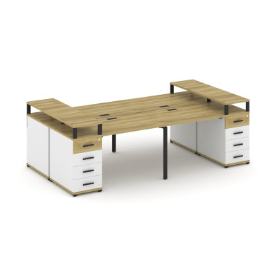 Concept Рабочая станция 4 места с 2 опорными тумбами CN.DRS-441 B Дуб Мали/Бе...