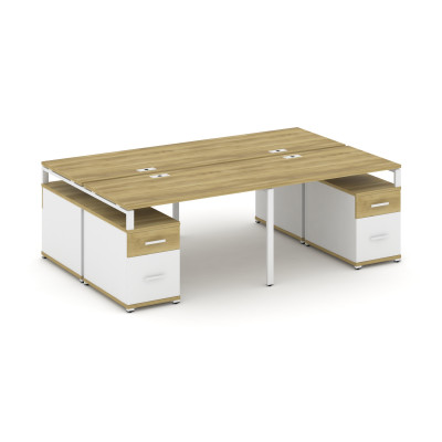 Concept Рабочая станция 4 места 2 опорными тумбами CN.DRS-445 A Сандал Янтарн...