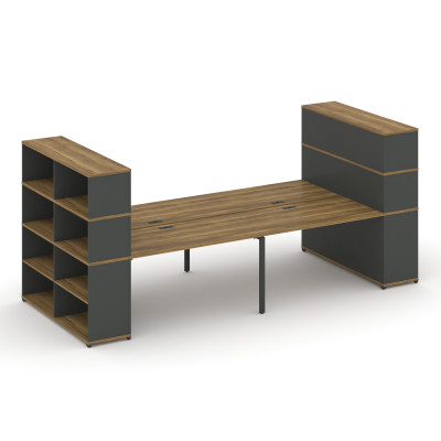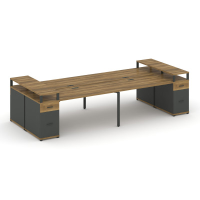 Concept Рабочая станция 4 места 2 опорными тумбами CN.DRS-445 A Кобо/Антрацит...