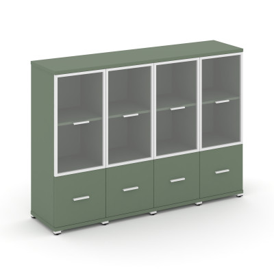 Concept Шкаф 4 узкие секции, 3 ниши CN.STU-342 RPW W Кобо/Металл Белый/Прозра...