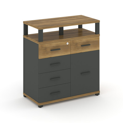 Concept Тумба приставная узкая со свесом 4 ящ. CN.TUS-001 A Кобо/Антрацит/Мет...